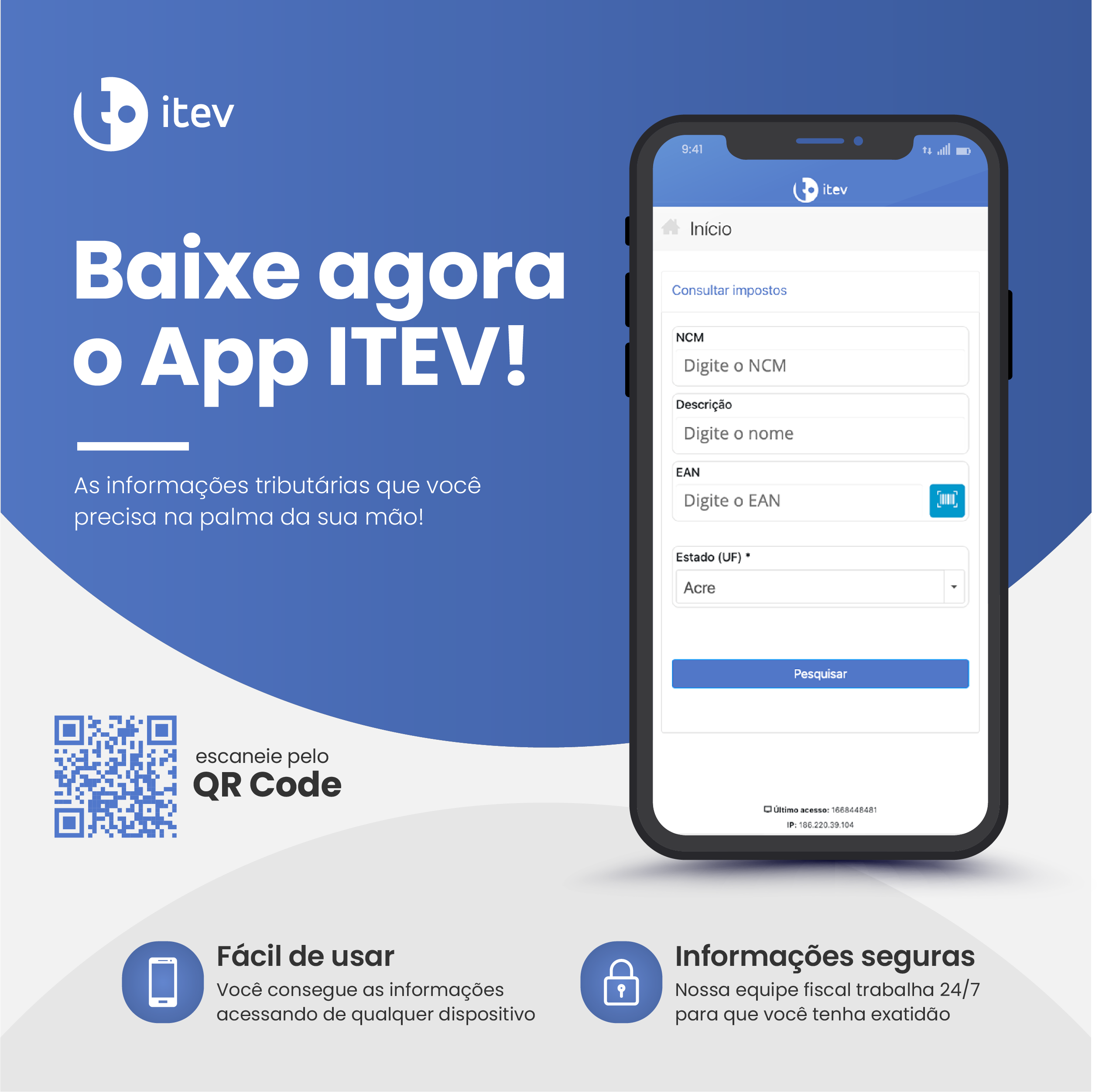 Não perca mais tempo lidando com complicações na gestão de impostos! Com o aplicativo da Itev, você tem acesso à mesma consulta de impostos de forma rápida e fácil que você já conhece, diretamente no seu smartphone. Baixe agora e experimente a diferença de ter tudo o que precisa em um único lugar!
